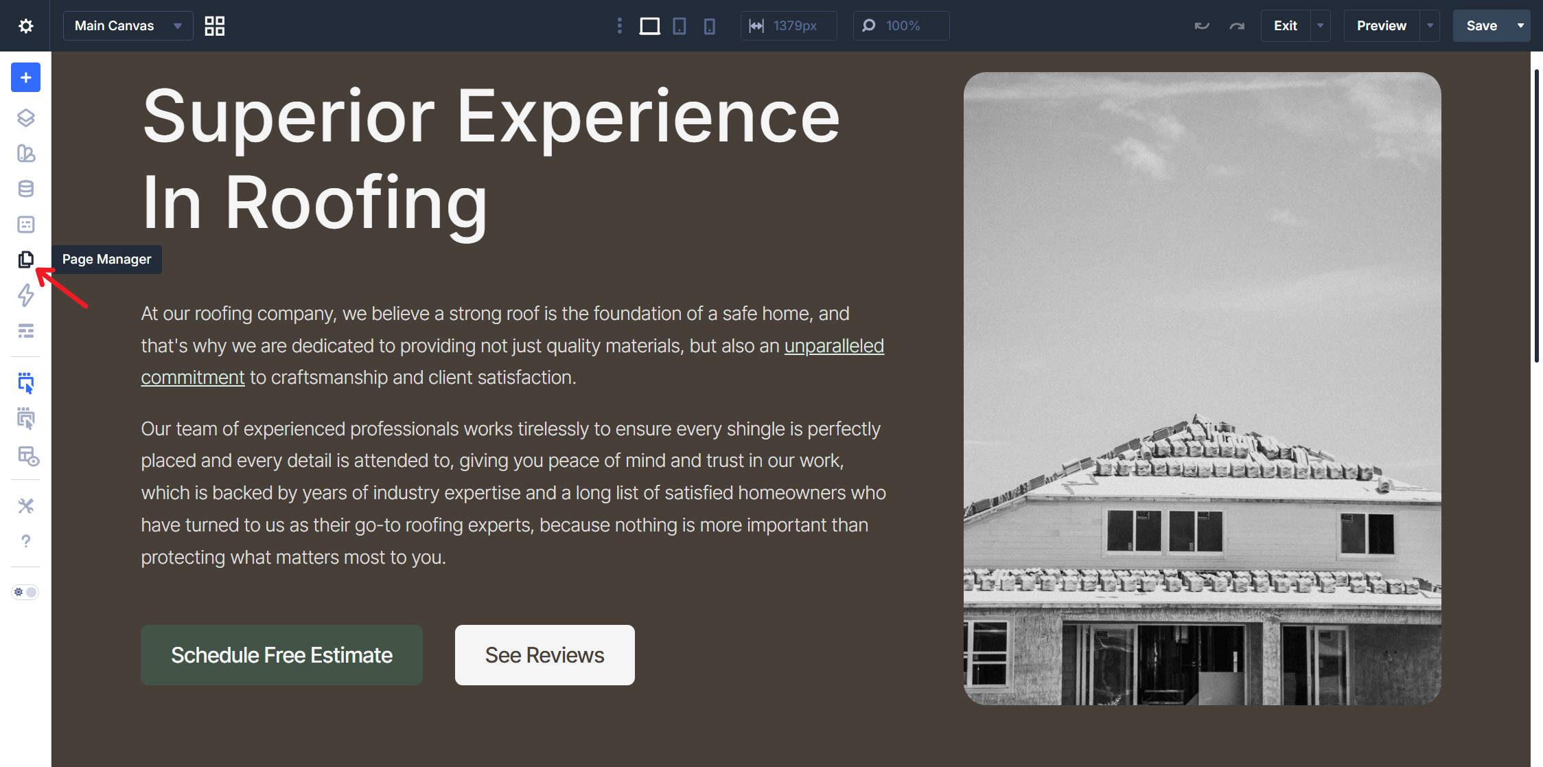 Page Manager Icon Located Left Sidebar
