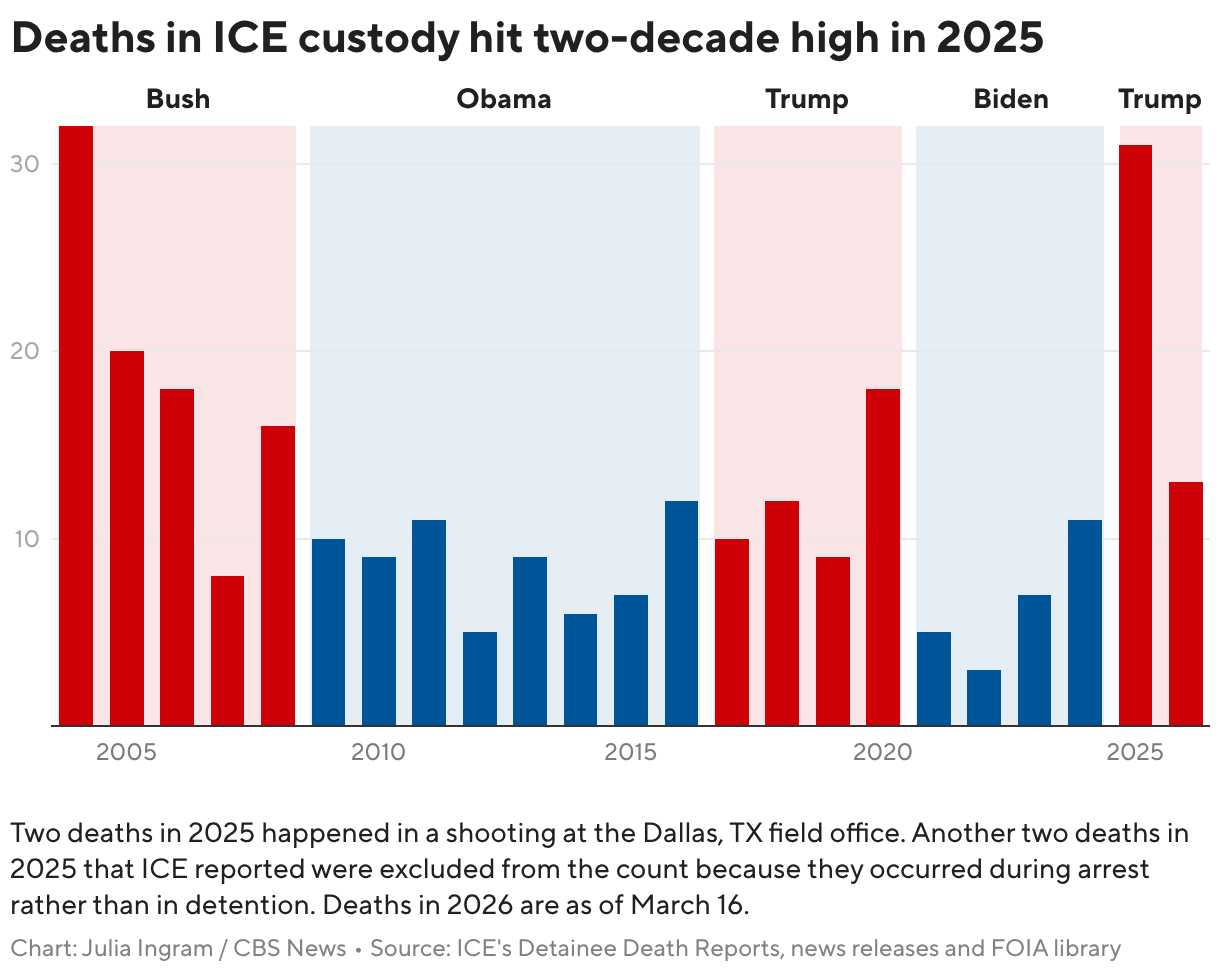 Paktiawal, who was evacuated from Afghanistan during the U.S. military withdrawal from the country in the summer of 2021, was the 12th person to die this year while in ICE custody. Two days later, a 19-year-old Mexican man died by presumed suicide. The 13 deaths are more than triple the number that had died by this point last year. In 2025, 31 ICE detainees died, a two-decade high, according to a CBS News analysis of ICE records.