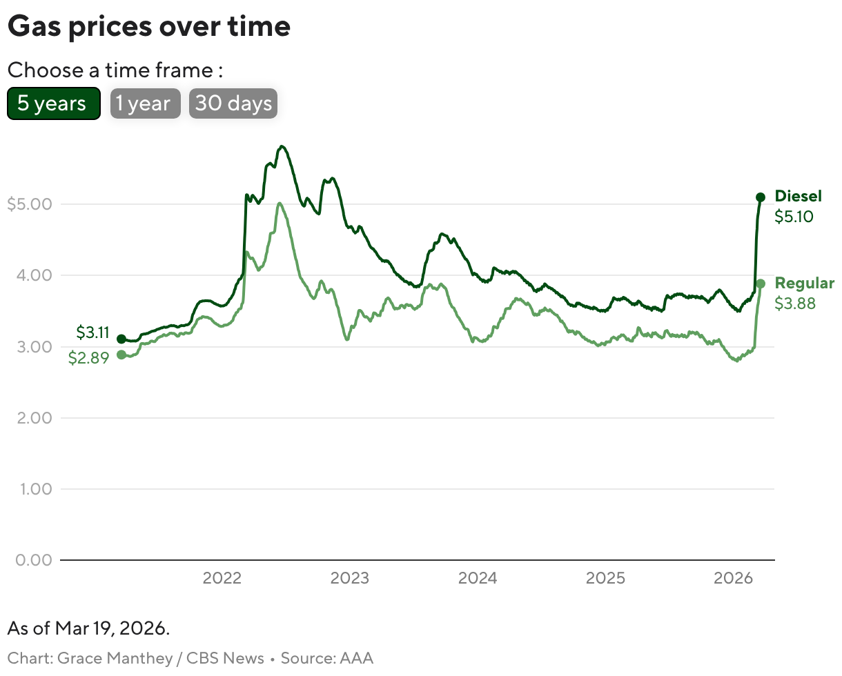 The Stanford researchers’ calculation of the additional household gas expenditures assumes that the strait will remain closed for three weeks. If tensions ease and tankers start traversing the waterway sooner, estimates of how much consumers could spend on gas would change, Neale Mahoney, director of the Stanford institute, told CBS News.